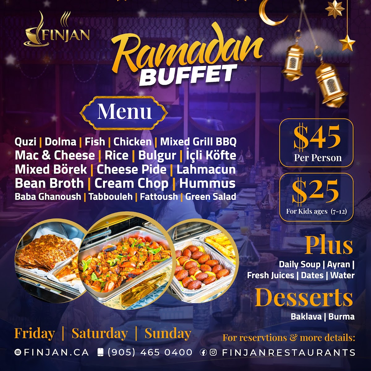 Welcome to Finjan - Middle Eastern Turkish Halal Restaurant in Oakville, where a delightful culinary journey awaits. Here, you can indulge in a rich menu that showcases authentic Turkish and Middle Eastern flavors. Start your feast with their mouthwatering Kebabs, featuring grilled beef and succulent chicken souvlaki, all served with BBQ tomatoes and peppers. For a taste of tradition, don’t miss the exquisite Tajines, including lamb and shrimp, cooked to perfection with aromatic vegetables in olive oil.